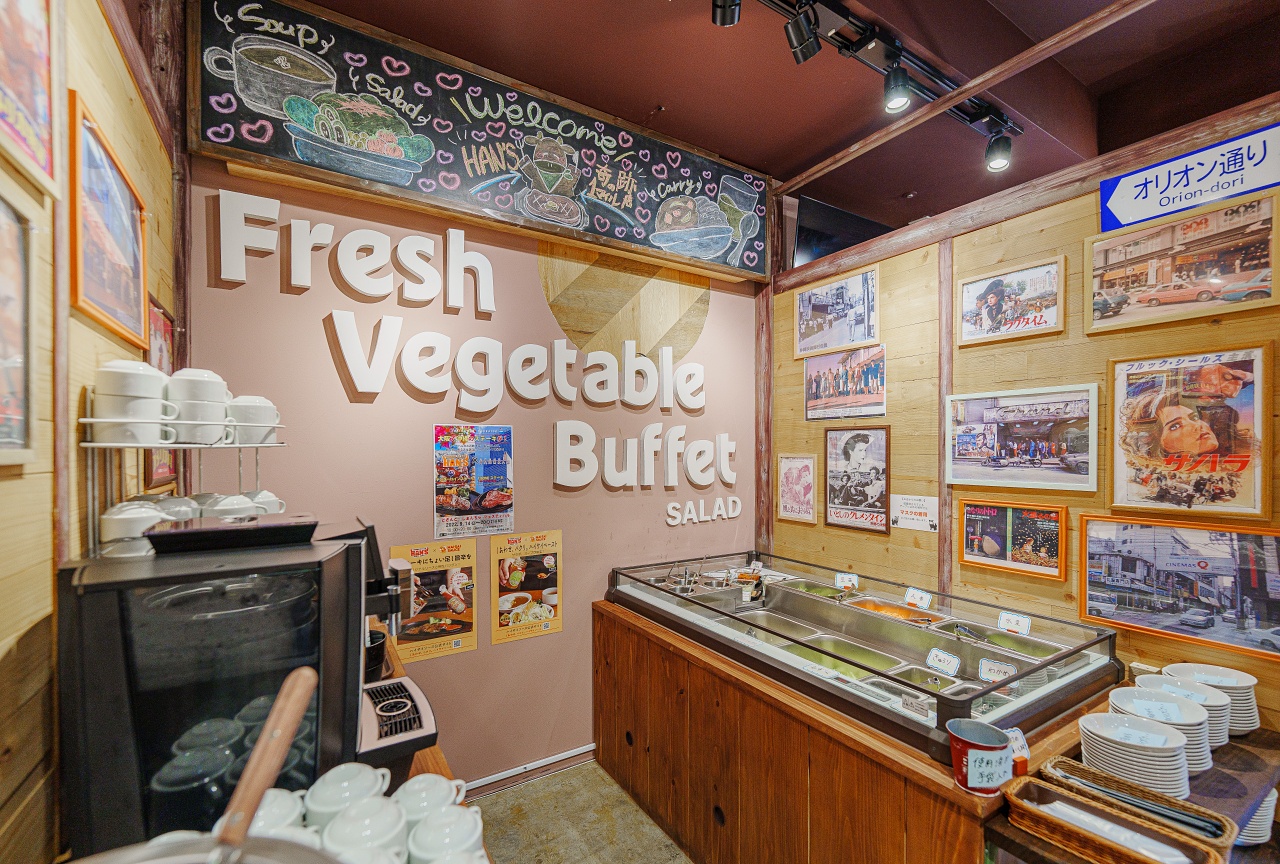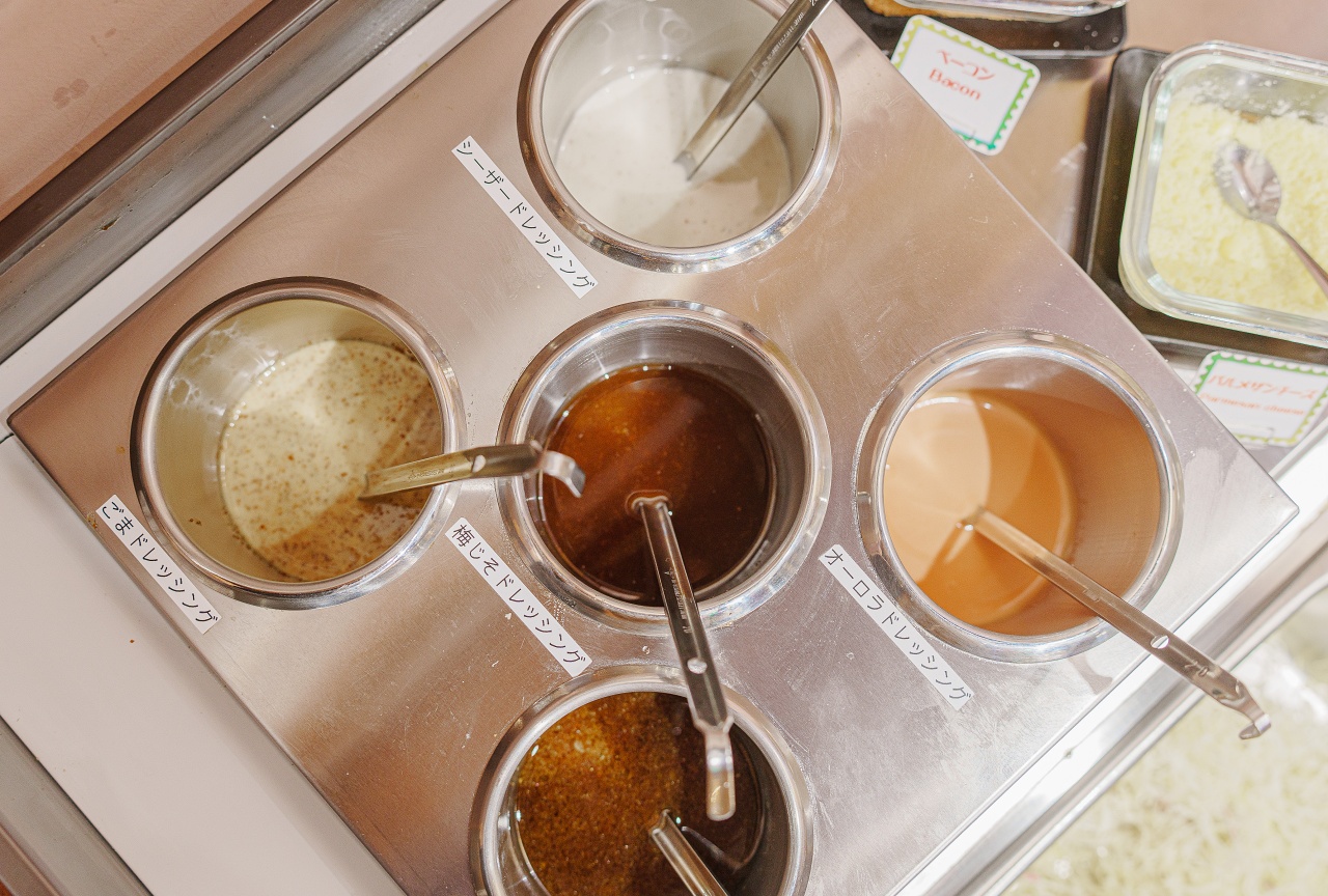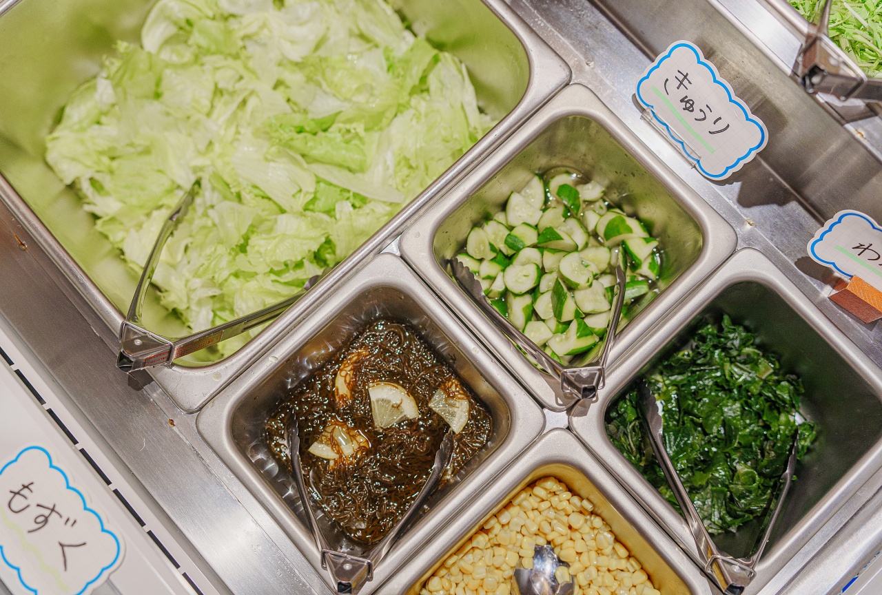 메뉴를 시키고 추가로 500엔을 더 하면 샐러드 바가 무료입니다.