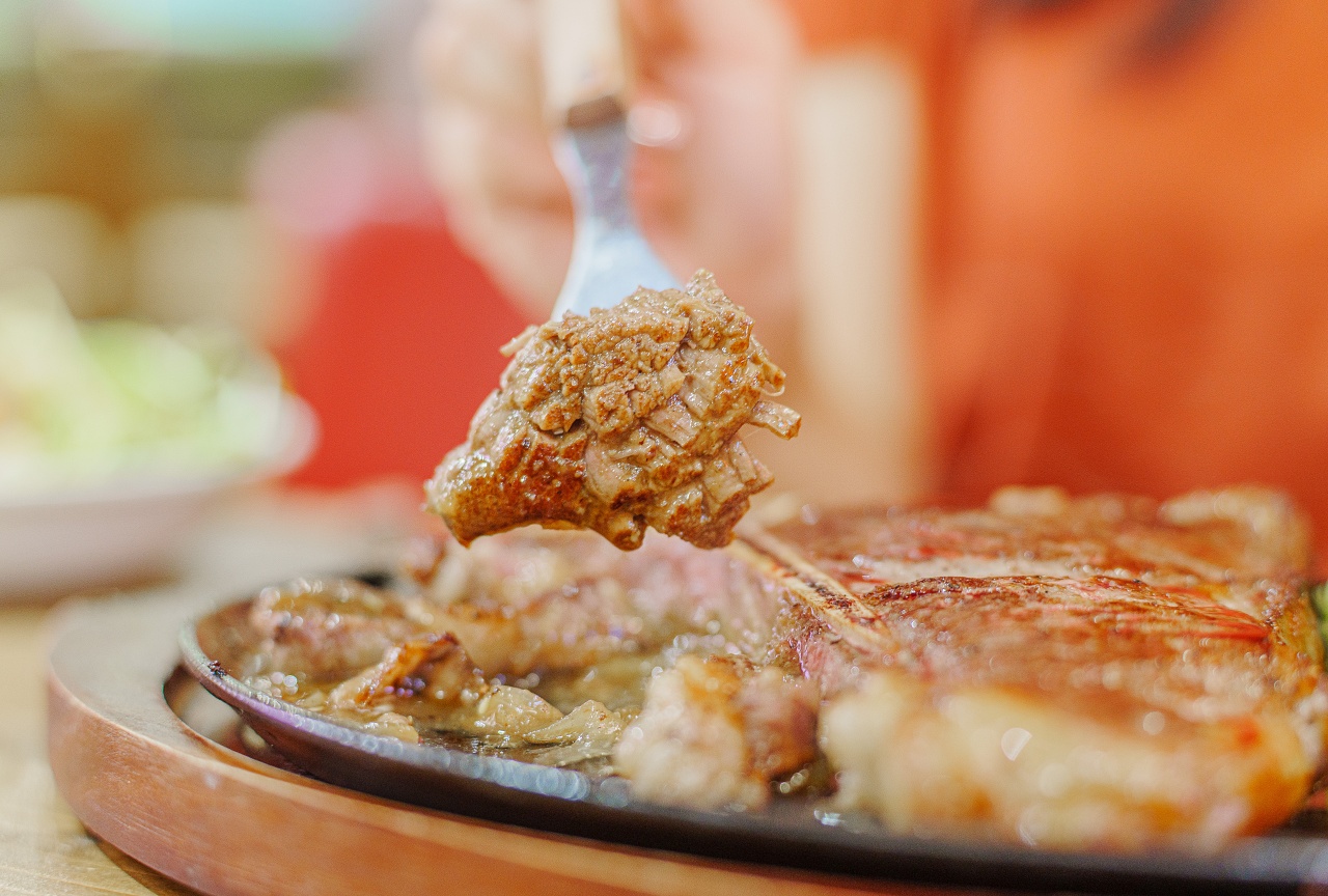 "티본스테이크"는 적당한 기름기와 부드러움, 그리고 탄력이 맛있습니다.