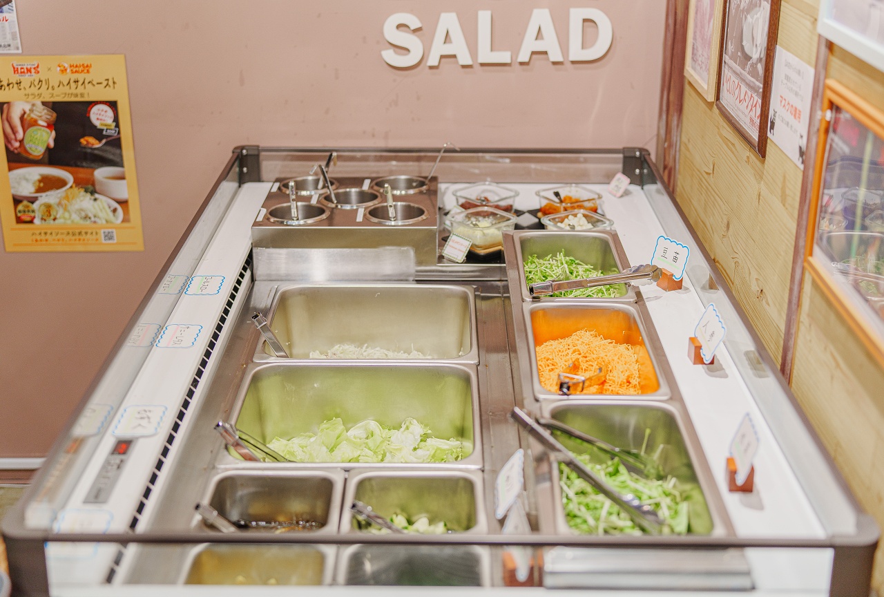 메뉴를 시키고 추가로 500엔을 더 하면 샐러드 바가 무료입니다.