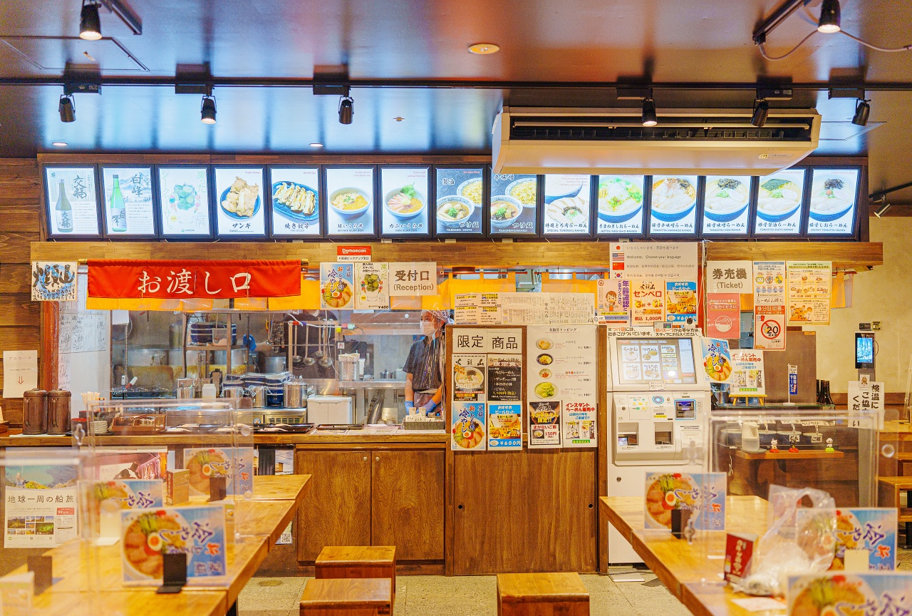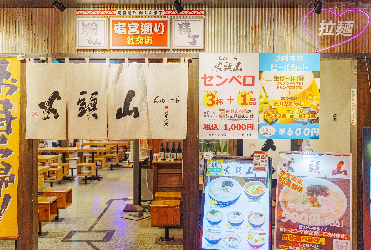 "류구 도오리"에서는 북해도 아사히카와의 유명한 "산토우카(山頭火) 라멘"을 만날 수 있습니다.