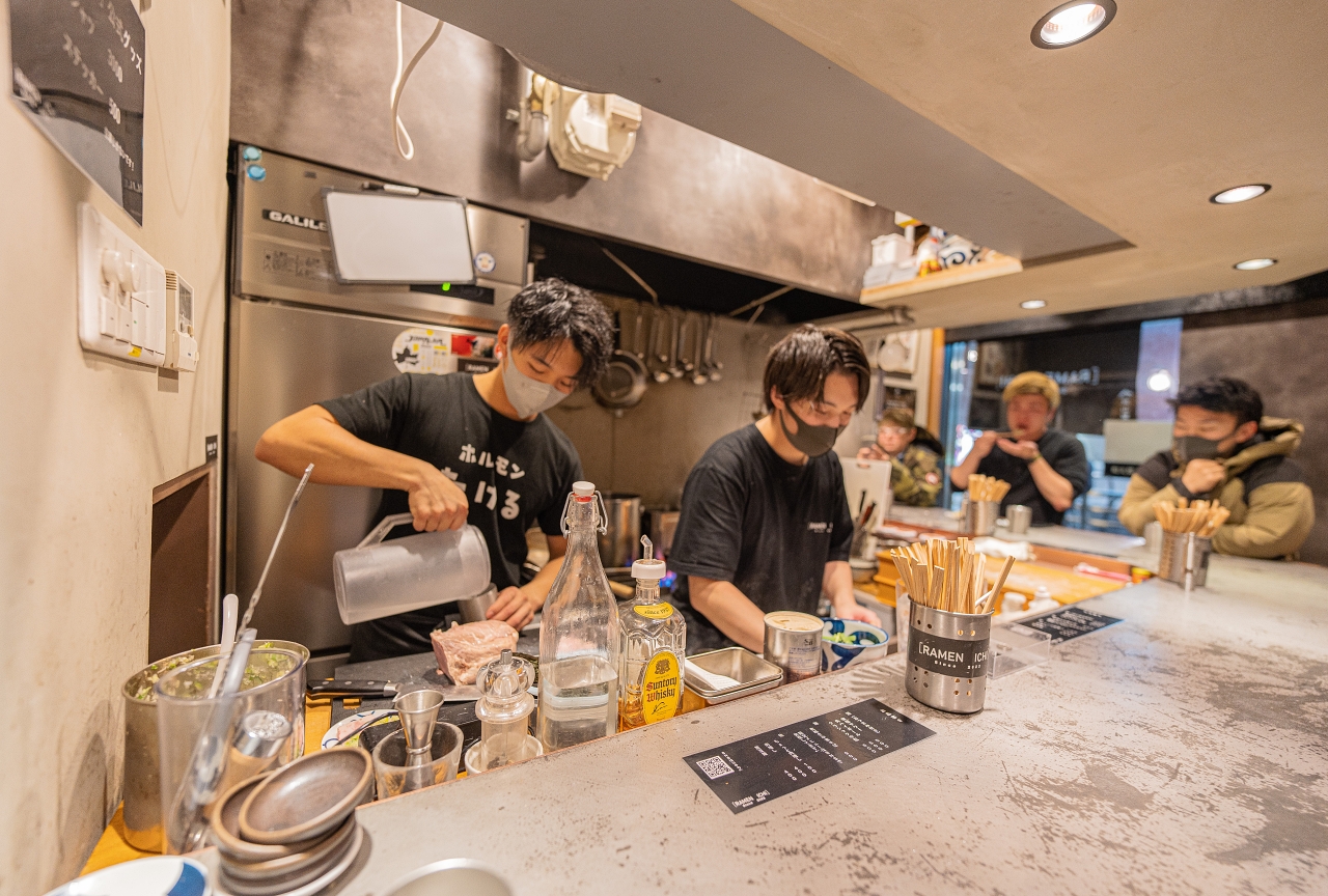 바 같은 느낌의 입구이지만 "RAMEN ICHI"라고 적혀 있는 걸 보니 라멘집이 맞습니다.