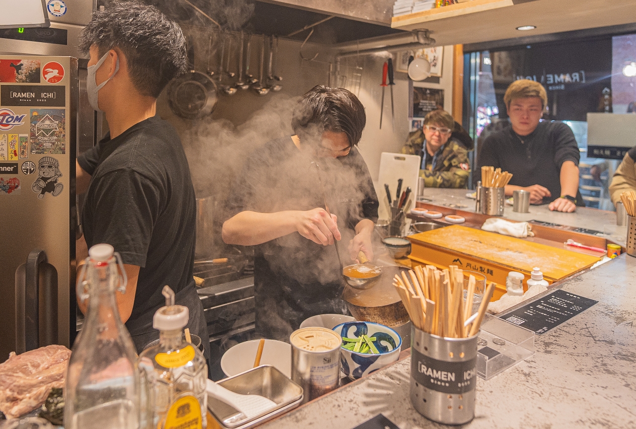 바 같은 느낌의 입구이지만 "RAMEN ICHI"라고 적혀 있는 걸 보니 라멘집이 맞습니다.