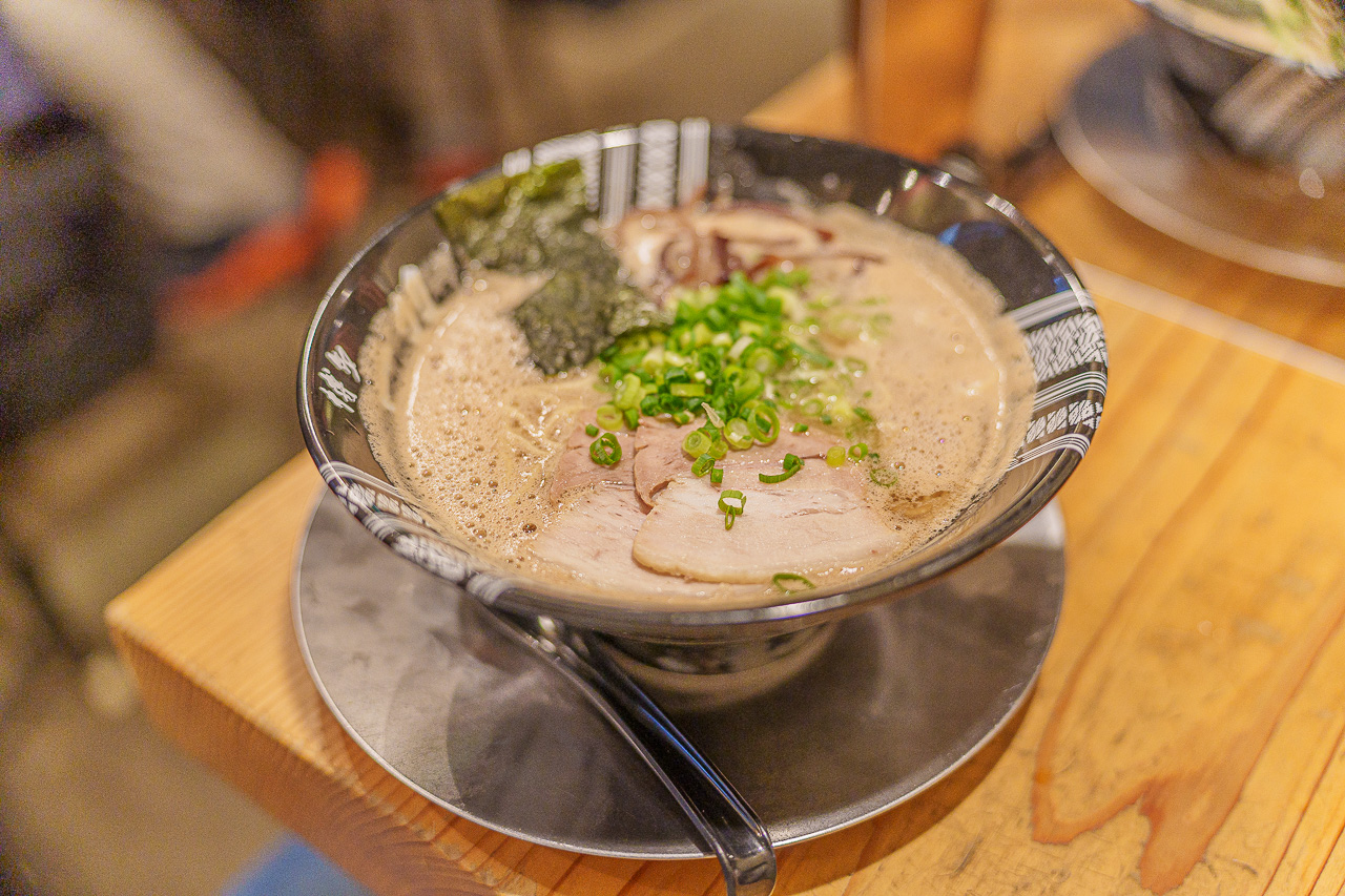 잇소우 라멘은 후쿠오카의 대표적인 돈코츠 라멘 맛집으로, 국물이 카푸치노처럼 거품이 가득한 것이 특징입니다. 돼지 사골 육수를 오랫동안 끓여서 만든 진하고 부드러운 국물과 얇은 면발이 잘 어울리는 라멘입니다. 국물이 너무 진해서 묽은 죽 같은 느낌도 듭니다. 국물에서 돼지뼈 가루가 씹히는 듯한 느낌이 드는데, 돼지 냄새가 진해서 이런 향이 힘든 분에게는 추천하기 어렵습니다. 역으로 말하면 진한 돈코츠를 좋아하시는 분들에게는 천국입니다.