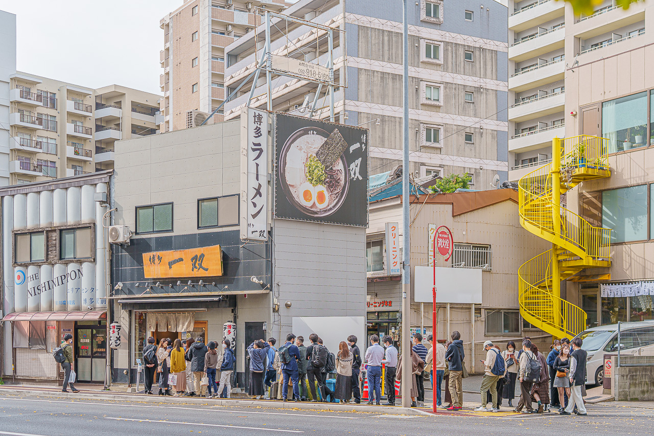 웨이팅이 거의 필수인 후쿠오카 라멘 맛집 잇소우(一双). 후쿠오카를 여행하다 보면 위의 사진처럼 줄을 길게 서고 있는 가게들이 종종 보입니다. 잇소우 라멘은 2012년에 두 형제가 후쿠오카에 창업한 라멘 가게입니다. 현재는 후쿠오카 시내에 총 3개의 지점이 있습니다. 본점과 기온점은 하카타 역에서 가깝고, 나카스점은 나카스 강변 쪽에 있습니다. 영업시간은 점포마다 다르니 주의하시기 바랍니다. 웨이팅이 거의 필수인 인기 맛집이므로, 시간에 여유를 두고 방문하시는 것이 좋습니다.