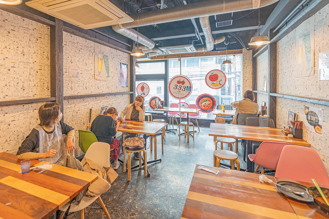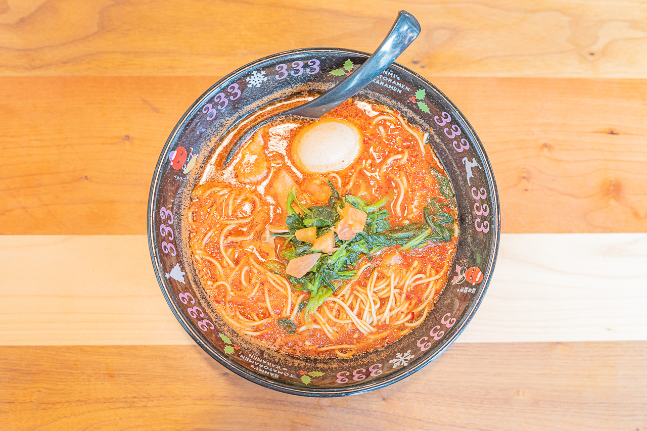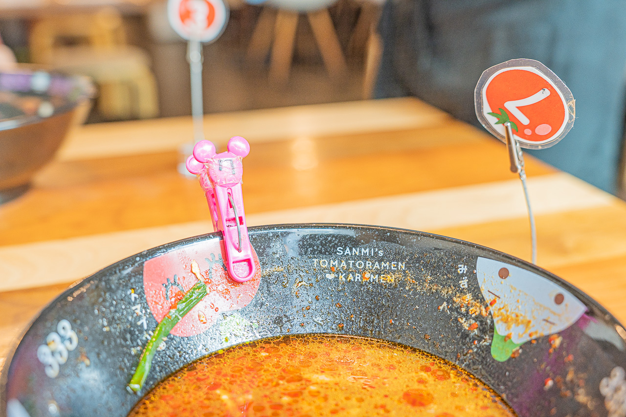 토마토라면은 단맛, 신맛, 감칠맛이 나는 토마토와 향미채소 국물에 스트레이트 가는 면이 특징이며 파스타 느낌으로 먹을 수 있습니다. 매운면은 7단계의 매운맛을 선택할 수 있는 스파이시한 라면으로 마신 후 마무리로도 추천합니다. 또한 토마토 모치나베라는 새로운 장르의 냄비도 제공하고 있습니다.