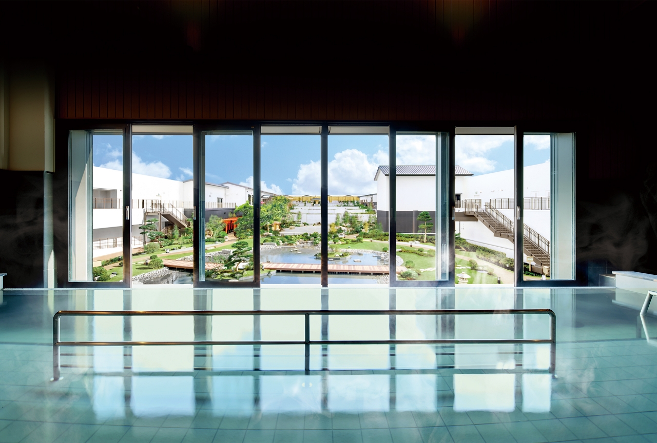 대지면적 약 5,000평을 자랑하는 간사이 최대의 온천형 테마파크. 원천을 흘려보내는 천연온천과 고농도 탄산탕 등 9종류의 목욕탕과